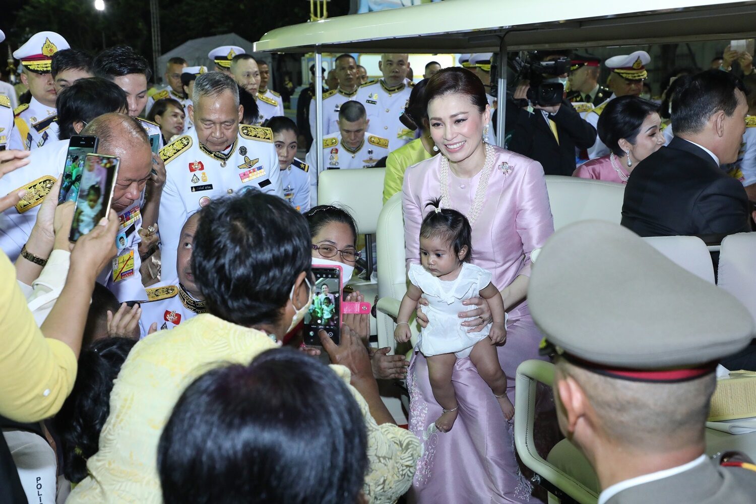 ภายหลังเสร็จพิธี พระบาทสมเด็จพระเจ้าอยู่หัว สมเด็จพระนางเจ้าฯ พระบรมราชินี ประทับรถไฟฟ้าพระที่นั่ง เสด็จฯ เยี่ยมทักทายประชาชนที่มาร่วมพิธี พร้อมด้วยสมเด็จพระเจ้าลูกเธอ เจ้าฟ้าพัชรกิติยาภา นเรนทิราเทพยวดี กรมหลวงราชสาริณีสิริพัชร มหาวัชรราชธิดา และเจ้าคุณพระสินีนาฏ พิลาสกัลยาณี