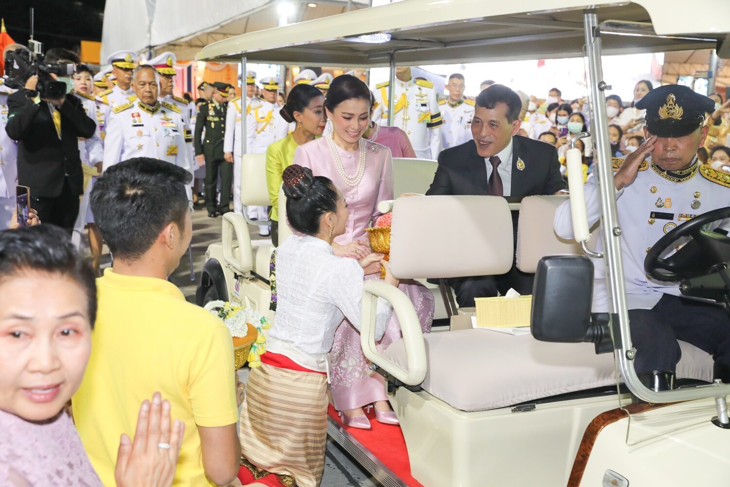‘ในหลวง-พระราชินี’ ทรงแย้มพระสรวล โบกพระหัตถ์ทักทายพสกนิกรอย่างใกล้ชิด