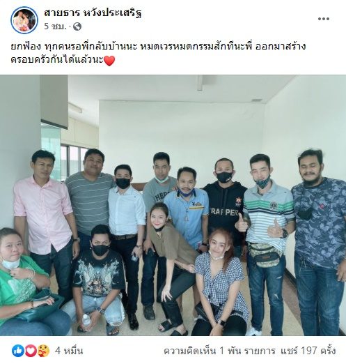 ต่อมาน้องเนย สายธาร โพสต์อีกว่า “ยกฟ้อง ทุกคนรอพี่กลับบ้านนะ หมดเวรหมดกรรมสักทีนะพี่ ออกมาสร้างครอบครัวกันได้แล้วนะ”
