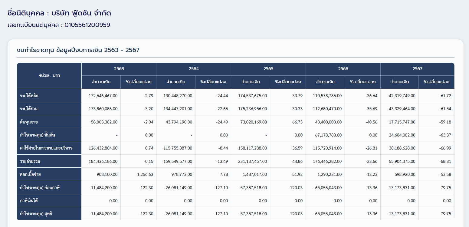ขณะที่ผลประกอบการของฟู้ดซัน 5 ปีล่าสุด เป็นดังนี้
