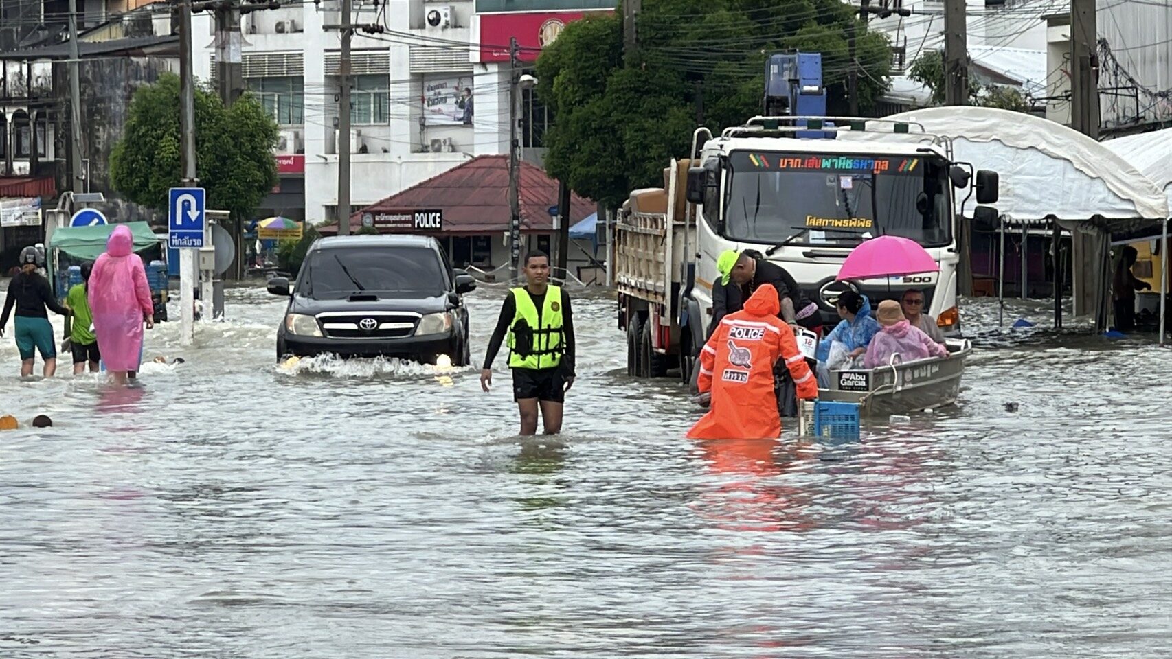 นายสมใจ แซ่อ๋อง หรือโกจ้อง อายุ 54 ปี ชาวบ้านชุมชนในบ้าน เขตเทศบาล ต.ย่านตาขาว ได้ลอยคอออกมาจากบ้าน พร้อมกับเพื่อนบ้าน โดยชาวบ้านบางคนได้ลอยคอออกมาโดยใช้แกลลอนน้ำมันคาดติดตัวมา