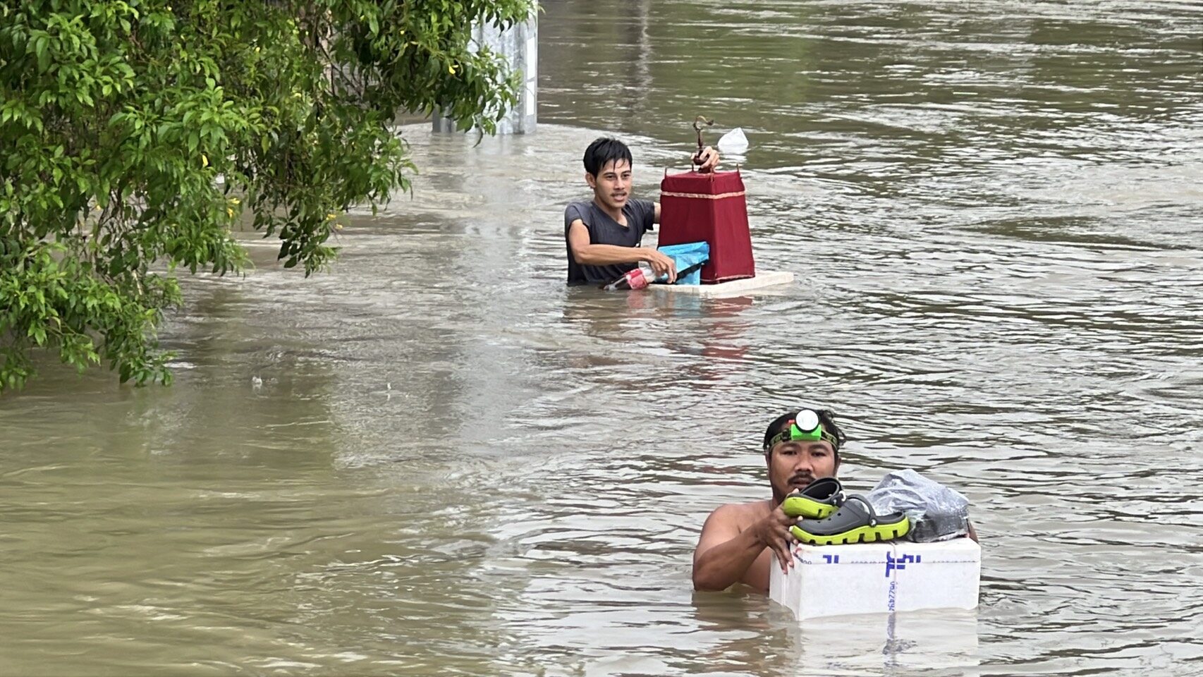 นายสมใจ แซ่อ๋อง บอกว่า น้ำทะลักเข้าท่วมซ้ำซากเป็นครั้งที่ 2 โดยไหลบ่าเข้ามาตั้งแต่ช่วงเมื่อคืนที่ผ่านมา มีความเชี่ยวรุนแรงมาก ระดับน้ำท่วมหัวยื่นมือ หรือประมาณ 3 เมตรแล้ว ชาวบ้านก็จำเป็นต้องอาศัยอยู่บนชั้น 2 โดยที่ไม่สามารถออกจากบ้านได้ ติดอยู่เป็นจำนวนมาก ซึ่งเรือมีไม่เพียงพอที่จะเข้ามารับ คิดว่าสถานการณ์จะรุนแรงและมากขึ้นเพราะด้านบนเกิดน้ำป่าไหลหลาก
