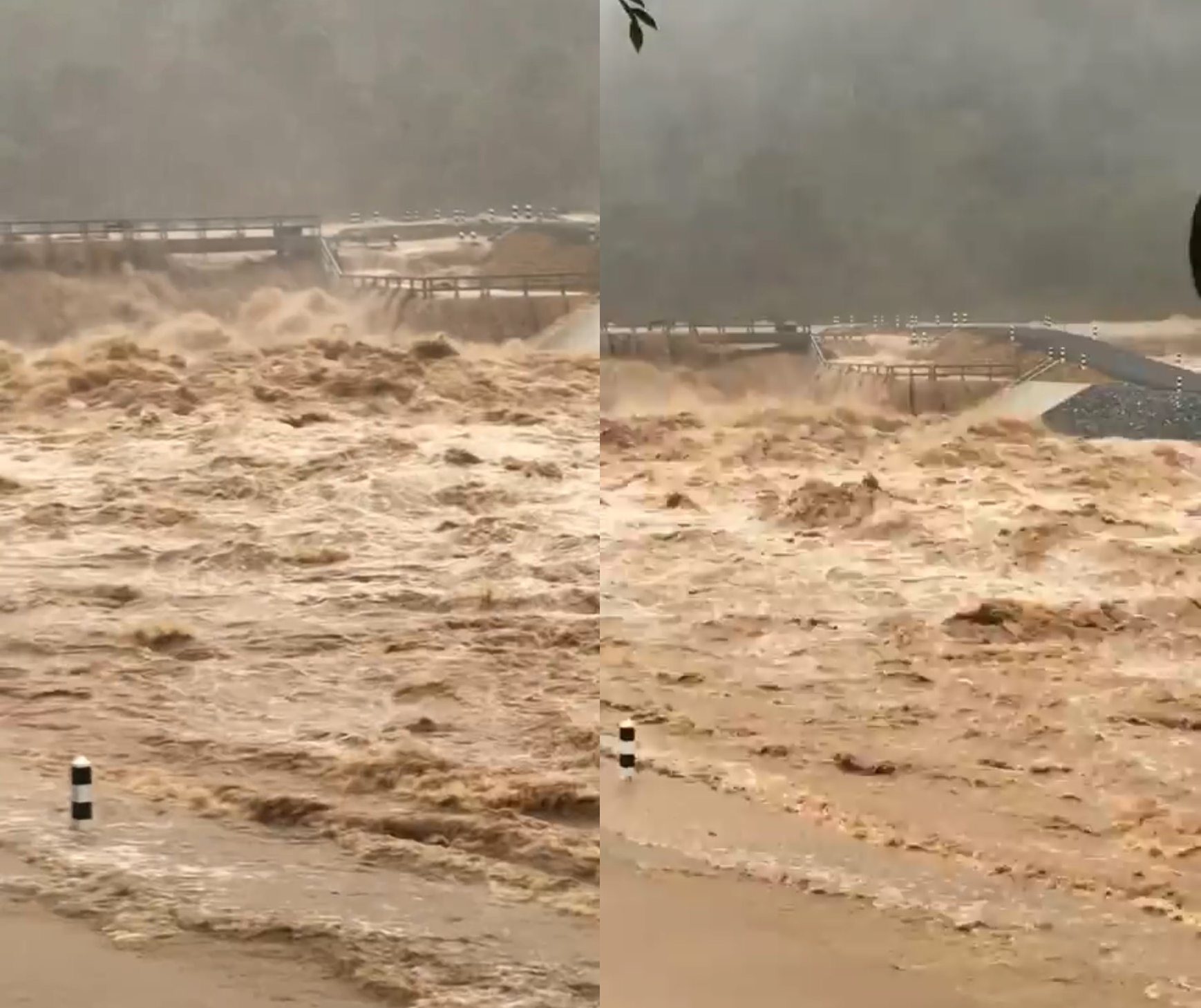 ส่วนที่ อ.ย่านตาขาว ที่น้ำตกไพรสวรรค์ หมู่ 4 ต.โพรงจระเข้ เกิดน้ำป่าไหลหลากมีความรุนแรงเป็นอย่างมาก ไหลบ่าลงมาตั้งแต่ช่วงวานนี้ที่ผ่านมา จนทำให้ช่วงย่ำรุ่งของวันนี้ หูเขื่อนบริเวณน้ำตกไพรสวรรค์พังได้รับความเสียหาย จนมวลน้ำทะลักไหลลงสู่พื้นล่างและเข้าท่วมบ้านเรือนประชาชน