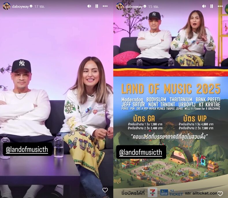 ขณะที่ ส่องความเคลื่อนไหวของเวย์ ไทเทเนี่ยม หรือ เวย์ ปริญญา อินทชัยเวย์ สามี นานา ก็โพสต์ปกติและยังแชร์โพสต์คลิปล่าสุดลงไอจีสตอรี่ปกติ ขณะไปกับภรรยาในรายการ หมีLIVEปะ? โปรโมตคอนเสิร์ต LAND OF MUSIC 2025 ที่สวนผึ้ง ซึ่งจะจัดวันที่ 20-21 ธันวาคมนี้