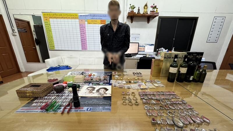 พร้อมของกลาง 38 รายการ คือ กรอบพระไมครอน จำนวน 99 กรอบ พระเหรียญ จำนวน 24 องค์ พระผง จำนวน 23 องค์ พระรูปหล่อจำนวน 14 องค์ ชุดเหรียญพระพุทธโสธร 1 กล่อง ตะกรุด จำนวน 3 ดอก เครื่องราชอิสริยาภรณ์ ธนบัตรที่ระลึก เหรียญสกุลต่างประเทศ และไทย จำนวน 17 เหรียญ เครื่อประดับเข็มกลัดทอง-เงิน จำนวน 14 ชิ้น