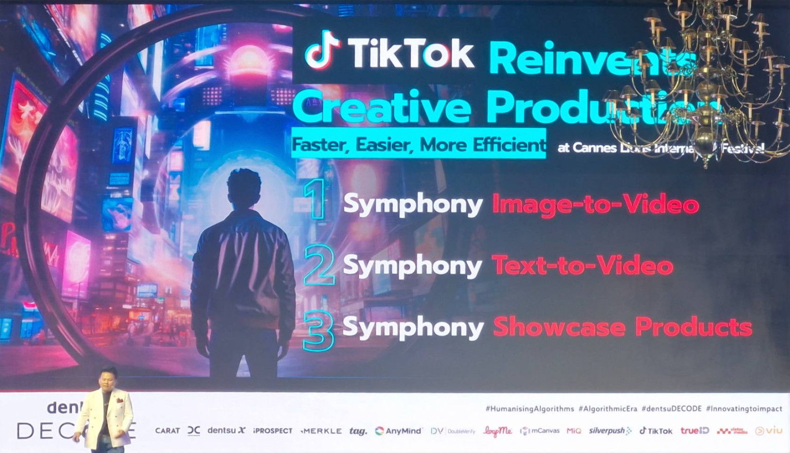 งาน dentsu DECODE 2025 ในปีนี้ ได้รับการเสริมพลังด้วยความร่วมมือจากหลากหลายพันธมิตร ซึ่งล้วนเป็นผู้นำด้านนวัตกรรมการตลาดโดย DoubleVerify แสดงให้เห็นถึงบทบาทของ AI ในการยกระดับคุณภาพของสื่อ และเพิ่มประสิทธิภาพของแคมเปญโฆษณาผ่านการวิเคราะห์และวางแผนแบบเรียลไทม์ด้วย DV Scibids ที่ช่วยเพิ่ม Viewability และ Reach ภายใต้งบประมาณจำกัดได้อย่างมีประสิทธิภาพ MiQ ร่วมเป็นพาร์ตเนอร์ด้าน Programmatic Media โดยมอบโซลูชันที่ออกแบบเฉพาะสำหรับแคมเปญในทุกช่องทางอย่างแม่นยำ TrueID แพลตฟอร์มดิจิทัลไลฟ์สไตล์ชั้นนำของไทย ได้เข้ามาช่วยยกระดับประสบการณ์ด้วยการเล่าเรื่องที่ขับเคลื่อนด้วยข้อมูลผ่าน Mobile, Web และ CTV AnyMind แสดงให้เห็นถึงการประยุกต์ใช้ AI ในการไลฟ์สด เก็บข้อมูลผู้บริโภค และสร้างครีเอทีฟแบบ Personalization เพื่อผลลัพธ์ที่แข็งแกร่งยิ่งขึ้น และ LoopMe ได้นำความเชี่ยวชาญด้าน AI-Powered Brand Performance มานำเสนอวิธีการที่สามารถสร้างผลลัพธ์ได้เหนือมาตรฐานอุตสาหกรรมอย่างต่อเนื่องความร่วมมือทั้งหมดนี้สะท้อนถึงความมุ่งมั่นของ dentsu ในการสร้างระบบนิเวศที่ผสาน AI และ PI เข้าด้วยกัน เพื่อขับเคลื่อนผลลัพธ์ทางธุรกิจในยุคอัลกอรึทึมอย่างแท้จริง
