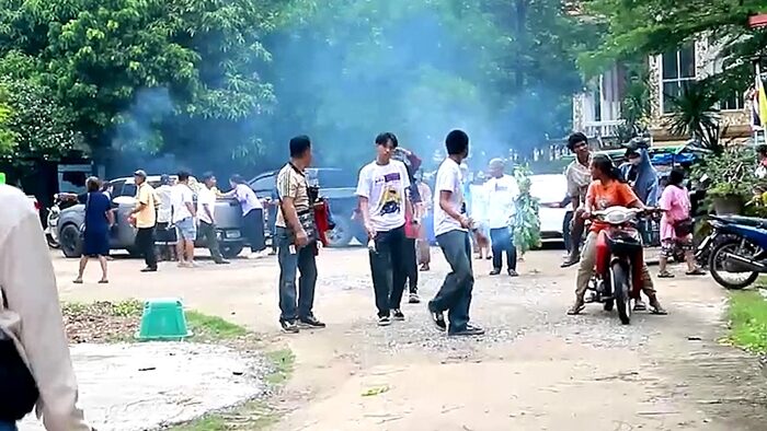 เมื่อเวลา 08.16 น. วันที่ 18 พ.ค.2568 เจ้าหน้าที่กู้ภัย รับแจ้งเหตุชุลมุนภายในวัดเขาใบไม้ ต.ตาคลี อ.ตาคลี จ.นครสวรรค์ ขณะมีการจัดพิธีแห่นาคของ นายคมกิต โดยมีแขกและญาติพี่น้องร่วมขบวนกว่า 100 คน บรรยากาศเป็นไปอย่างคึกคัก มีรถแห่เปิดเสียงดังกระหึ่มรอบอุโบสถ