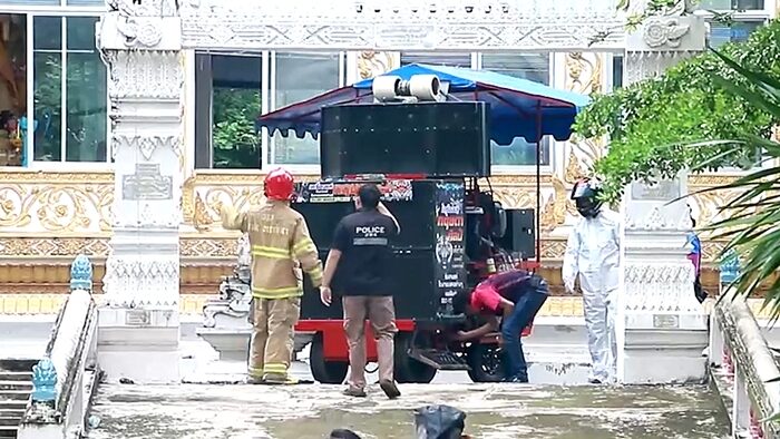 อย่างไรก็ตาม ในส่วนของรถแห่ซึ่งจอดค้างอยู่ข้างอุโบสถ ไม่สามารถนำลงมาได้ทันที เนื่องจากยังมีผึ้งบินวนอยู่จำนวนมาก เจ้าหน้าที่ต้องรอจนฝูงผึ้งสงบลง จึงช่วยกันนำรถออกจากพื้นที่อย่างปลอดภัย
