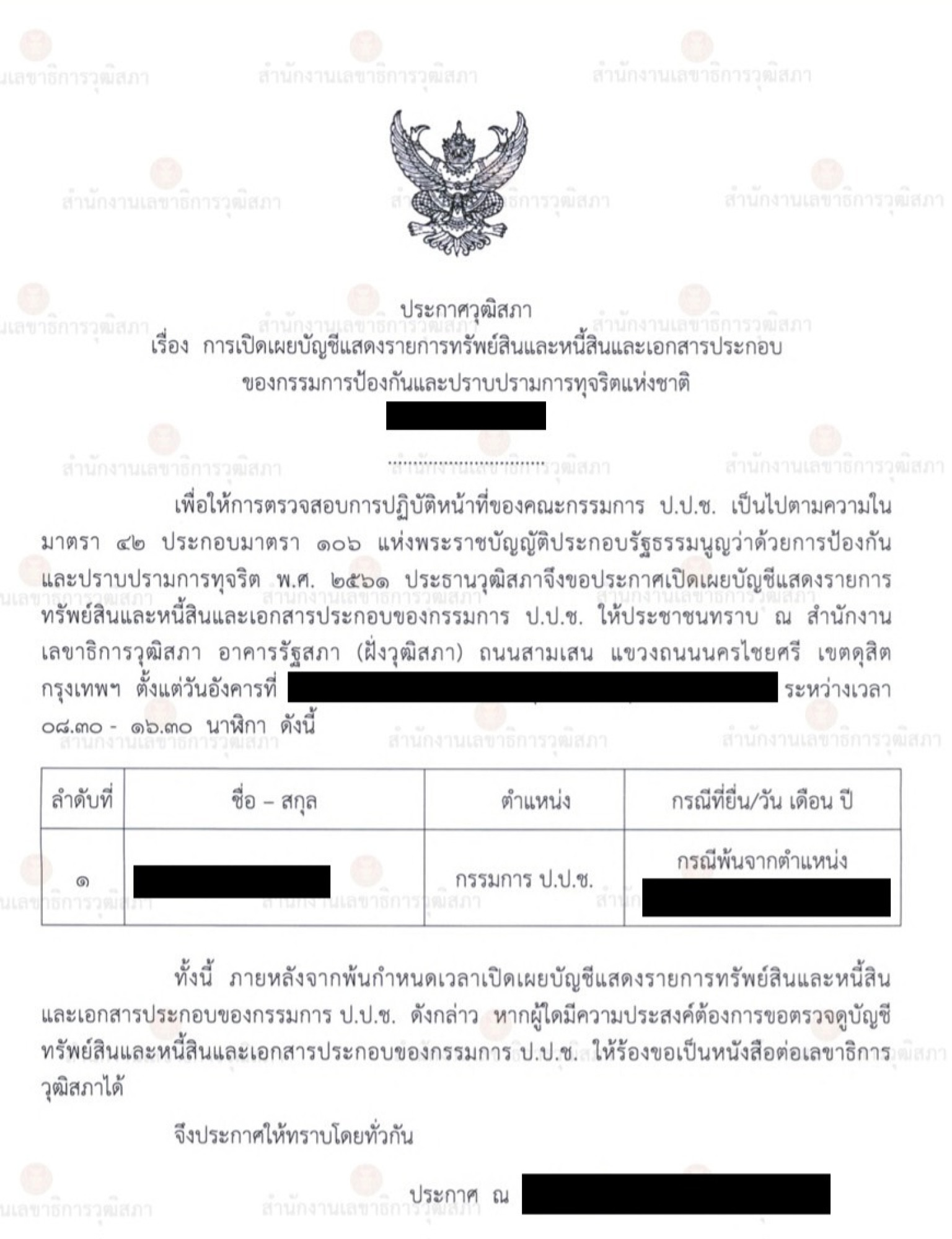 ผู้สื่อข่าวรายงานว่า ตามขั้นตอนตามกฎหมายการพ้นตำเเหน่ง/ครบวาระของกรรมการป.ป.ช. นั้น เมื่อกรรมการ ป.ป.ช. พ้นจากตำแหน่ง จะต้องยื่นบัญชีทรัพย์สินและหนี้สินต่อประธานวุฒิสภาภายใน 60 วันนับแต่วันพ้นจากตำแหน่ง ต่อประธานวุฒิสภา