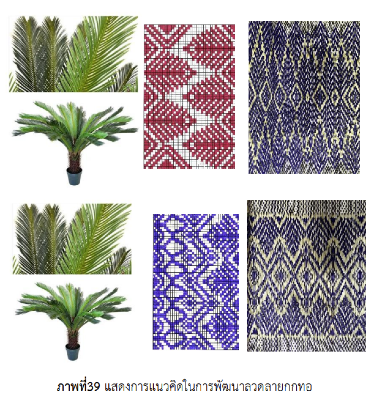 5.การออกแบบและพัฒนาผลิตภัณฑ์จากต้นกกและผ้าทอ และนำรูปทรงเรขาคณิตออกแบบเสื่อผืนจำนวน 5 ลวดลาย จากนั้นนำเสื่อกกที่ได้มาพัฒนาร่วมกับวัสดุตกแต่งอื่น ๆ เป็นผลิตภัณฑ์กระเป๋าแฟชั่นประเภทต่าง ๆ ที่มีลักษณะสามารถใช้ได้ทั้งผู้หญิงและชาย (Uni-sex) จำนวน 3 รูปแบบ 6. การใช้ประโยชน์จากต้นกกในการพัฒนากระดาษร่วมกับวัสดุอื่น และการทดสอบกระบวนการพิมพ์ระบบพื้นนูน และการนำกระดาษต้นกกไปพัฒนาเป็นบรรจุภัณฑ์เพิ่มมูลค่าเชิงพาณิชย์