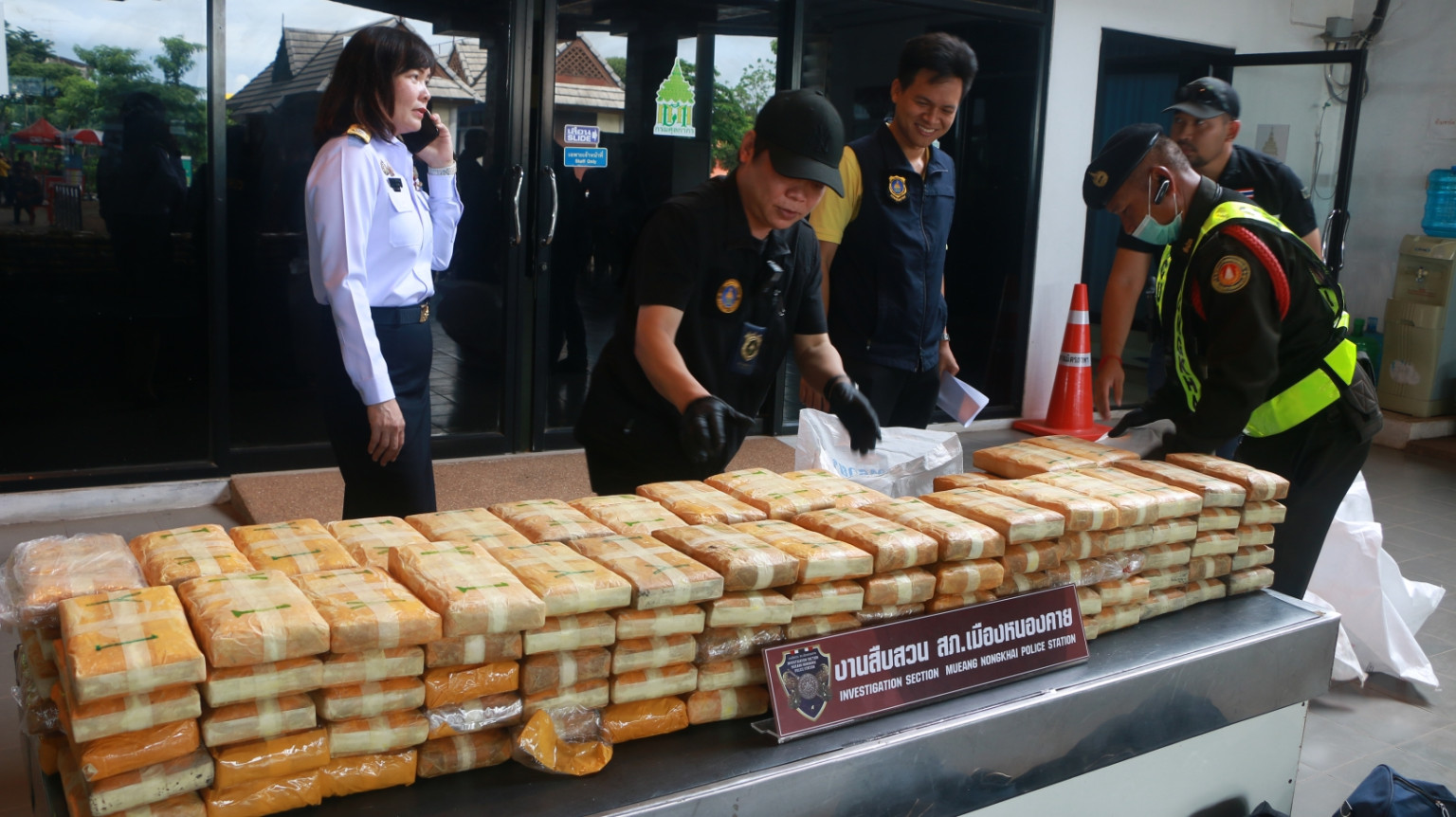 สืบเนื่องด้วยวันที่ วันที่ 28 พฤษภาคม 2568 เวลาประมาณ 11.35 น. เจ้าที่หน้าที่หน่วยปฏิบัติการพิเศษเฉพาะกิจเพิ่มประสิทธิภาพการควบคุมทางศุลกากร สำนักงานศุลกากรหนองคาย(หน่วย ฉก.สนค) ร่วมกับเจ้าหน้าที่พาสีประจำด่านพาสีสากลท่าบกท่านาแล้งและขั้วมิตรภาพ 1 เจ้าหน้าที่ด่านตม.สากล ขั้วมิตรภาพ 1 สปป.ลาว,, กองกำลังสรศักดิ์มนตรี,ตม.หนองคาย,ตชด. 245, นบ.ยส.24 ปปส.ภ.4 ,สภ.เมืองหนองคาย และเจ้าหน้าที่ความมั่นคง ร่วมกันตรวจสอบรถบรรทุกทะเบียนลาว บก 2890 กำแพงนะคอน ที่วิ่งเข้ามาจาก สปป.ลาว พบกระเป้าสัมภาระจำนวน10 ใบต้องสงสัยซุกช่อนอยู่บริเวณที่เก็บของบนหลังคารถ จึงได้นำมาตรวจสอบพบภายในกระเป๋ามี ยาบ้าบรรจุอยู่ เจ้าหน้าที่ได้นำมาตรวจนับอย่างละเอียดอีกครั้ง รวมยาบ้าที่ตรวจยึดได้ครั้งนี้ จำนวนประมาณ 996,000 เม็ด จึงนำของกลางส่ง สภ.เมืองหนองคาย ส่วนผู้ต้องหา 2 คนที่หลบหนีไปนั้นเจ้าหน้าที่ทราบชื่อและที่อยู่ ซึ่งจะได้ติดตามตัวเพื่อนำมาดำเนินมา ตามกฎหมายต่อไป