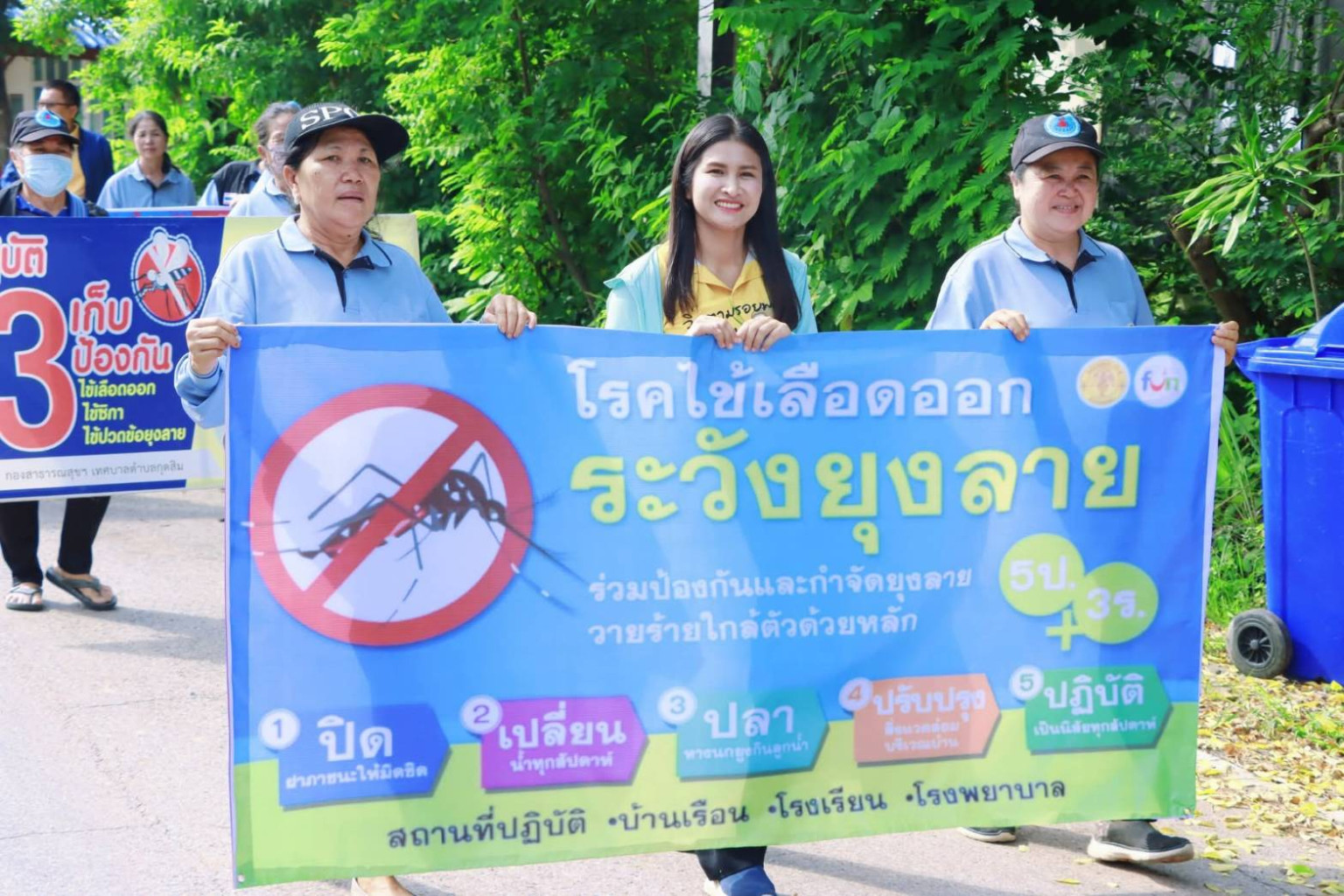 ทั้งนี้ได้เน้นย้ำมาตรการรณรงค์ไข้เลือดออก และกำจัดแหล่งเพาะพันธุ์ยุงลาย "5ป." ประกอบด้วย ปิด ภาชนะที่มีน้ำขัง, เปลี่ยน น้ำในภาชนะทุก 7 วัน, ปล่อย ปลากินลูกน้ำในภาชนะถาวร, ปรับปรุง สิ่งแวดล้อมให้โล่งโปร่ง, และ ปฏิบัติ อย่างสม่ำเสมอจนเป็นนิสัย รวมทั้งเน้นการรณรงค์ช่วยกันดำเนินตามมาตรการ 3 เก็บป้องกัน 3 โรค ได้แก่ เก็บบ้านให้ปลอดโปร่ง ไม่ให้ยุงลายเกาะพัก, เก็บขยะ เศษภาชนะต่างๆไม่ให้เป็นแหล่งเพาะพันธุ์ลูกน้ำยุงลาย และ เก็บน้ำ ปิดฝาภาชนะให้มิดชิด เช่น โอ่ง ไห ขวด ถัง เพื่อไม่ให้ยุงลายวางไข่ และต้องทำอย่างต่อเนื่องทุกสัปดาห์