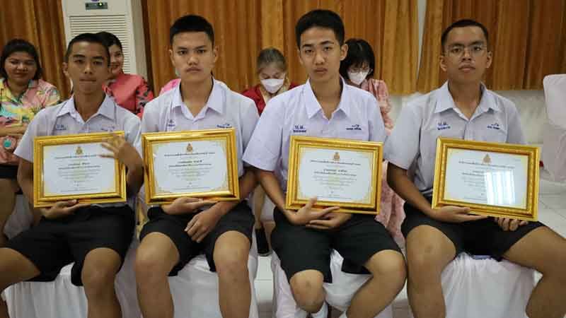 โดย ดร.อดิพงษ์ สุขนาค ผอ.โรงเรียนบางละมุง พร้อมคณะครูอาจารย์ ได้ร่วมมอบประกาศเกียรติคุณในนามของโรงเรียนด้วยเช่นกัน โดยมีตัวแทนจากหน่วยงานต่าง ๆ เข้าร่วมแสดงความยินดีและมอบรางวัลเพื่อเชิดชูเกียรติให้แก่นักเรียนทั้ง 4 นาย