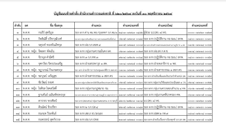 คำสั่งแต่งตั้งตร. ระดับ รองผกก.-สว. วาระประจำปี 2564 มีผลบังคับใช้ตั้งแต่วันที่ 7 ธ.ค.นี้