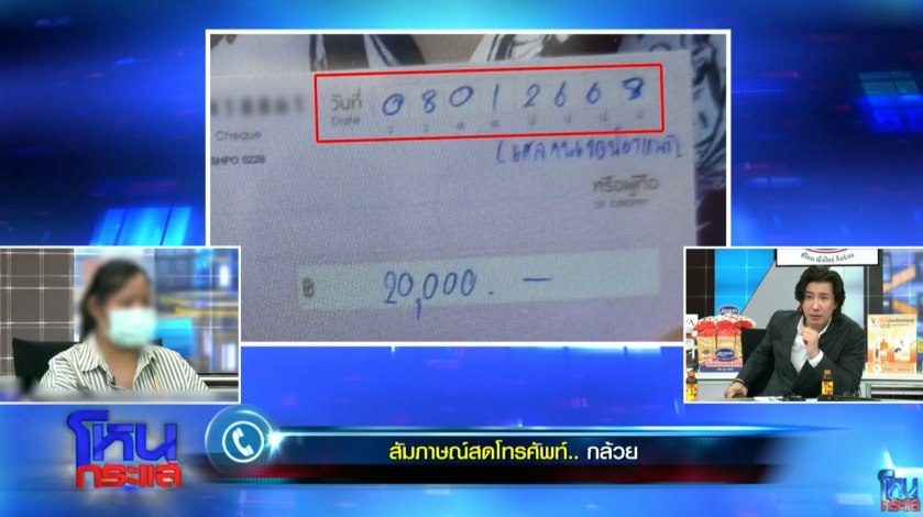 หนุ่ม กรรชัย ถามว่าตอนนี้อีกฝ่ายอยากได้เงินคืน 4 แสน ต้องทำอย่างไร คุณกล้วย กล่าวว่า ตอนนี้ทำเรื่องไว้ให้แล้ว และแจ้งไปแล้ว แต่จะแจ้งวันที่ได้เงินอีกครั้ง