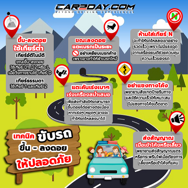 แพลนปีใหม่ของหลายๆคนส่วนใหญ่ในช่วงนี้ คงหนีไม่พ้นทริปขึ้นดอยขึ้นเขา อย่างแน่นอน เมื่อมีแพลนว่าจะหาเวลาไปพักผ่อนสูดอากาศเย็นสดชื่นกันแล้ว สิ่งที่ต้องคำนึงถึงเป็นหลักสำคัญของการขับรถขึ้นดอยขึ้นเขา นั้นก็คือเทคนิคการขับต่างๆ ที่จะช่วยให้เราปลอดภัยจากการเดินทางในครั้งนี้ เส้นทางเหล่านี้มีความอันตรายมากจึงต้องอาศัยเทคนิค ทักษะการขับรถอยู่พอสมควร เอาเป็นว่าก่อนออกเดินทาง Car2day จะมาแนะนำเทคนิคดีๆ ในการขับรถขึ้น-ลงดอยอย่างไรให้ปลอดภัย มาฝากกันค่ะ
