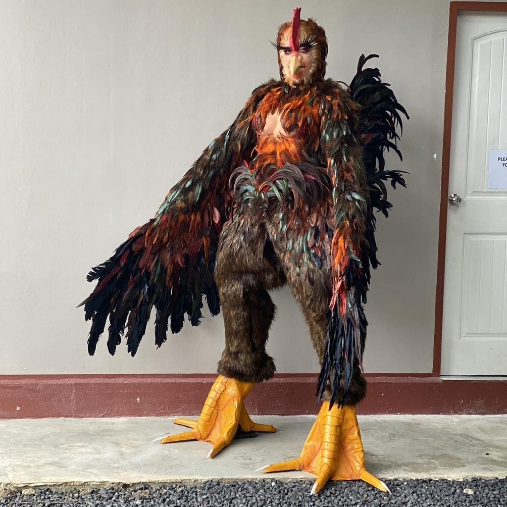 ด้านงานชุดก็ยิ่งใหญ่ม่แพ้กัน เพราะเหมือนยกขนไก่มาทั้งกองทัพ ปกคลุมตัว เนียนเหมือนไก่จริงๆ พร้อมเท้าไก่แบบใช่เลย ใส่ใจดีเทลสุดๆ และงานนี้ยังมีฮา เพราะเหมือน 'มาดามมด' จะเสริมชุดให้เข้ากับสุภาษิต "ไก่เห็นตีนงู งูเห็นนมไก่" เพราะชุดดังกล่าวมีหน้าอกด้วย