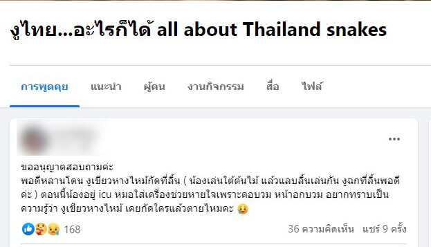 วันนี้ (15 ต.ค. 66) กลายเป็นอุทาหรณ์เตือนใจ เมื่อผู้ใช้ Facebook รายหนึ่ง โพสต์ลงในกลุ่ม 'งูไทย…อะไรก็ได้ all about Thailand snakes' แชร์ภัยใกล้ตัว หลานโดนงูเขียวหางไหม้ฉกที่ลิ้น