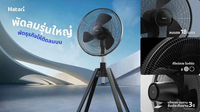 คุณชัญญา พานิชตระกูล ผู้ช่วยกรรมการผู้จัดการ สายงานขายและการตลาด บริษัท ฮาตาริ อิเลคทริค จำกัด กล่าวว่า “แคมเปญ พัดลมรุ่นใหญ่ พัดธุรกิจให้ติดลมบน เกิดจากความตั้งใจของ HATARI ที่อยากเป็นอีกหนึ่งแรงสนับสนุนเล็ก ๆ ให้กับผู้ประกอบการไทย ไม่ว่าจะเป็นร้านอาหาร คาเฟ่ ร้านซักผ้า หรือแม้แต่บ้านที่มีสัตว์เลี้ยงและพื้นที่กลางแจ้ง เราเชื่อว่าความเย็นสบายไม่เพียงช่วยให้ลูกค้ารู้สึกผ่อนคลาย แต่ยังช่วยสร้างบรรยากาศที่เอื้อต่อการทำธุรกิจให้น่ารื่นรมย์และเดินหน้าต่อไปได้อย่างมั่นใจ ซึ่งสอดคล้องกับแนวทางของ HATARI ที่มุ่งมั่นอยู่เคียงข้างคนไทยมาอย่างต่อเนื่องและยาวนาน เราจึงพัฒนาพัดลมอุตสาหกรรมรุ่นใหม่ที่ไม่ใช่แค่ แรงและทน แต่ยัง ‘ดูดี’ ด้วยพัดลมอุตสาหกรรม 18 นิ้วรุ่นล่าสุด (IQ18M1) ที่มีจุดแข็งคือ “พลังลมแรง 18 เมตร ดีไซน์สวย โมเดิร์น แข็งแรงทนทานรับประกันนาน 3 ปีประหยัดไฟ” เป็นการออกแบบเพื่อตอบโจทย์ผู้ประกอบการไทยทุกกลุ่มธุรกิจ”
