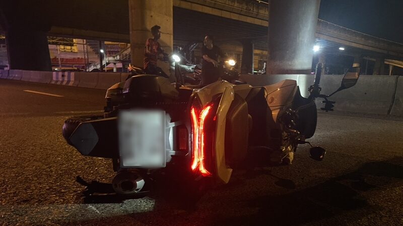 ที่เกิดเหตุบนถนนพหลโยธินช่องทางด่วนขาออก พบรถจักรยานยนต์ ยี่ห้อฮอนด้า พีซีเอ็กซ์ 160 ทะเบียน ฉะเชิงเทรา สภาพพลิกคว่ำติดขอบทางช่องกลางถนนด้านขวามีรอยครูดไถลกับพื้นพังเสียหาย