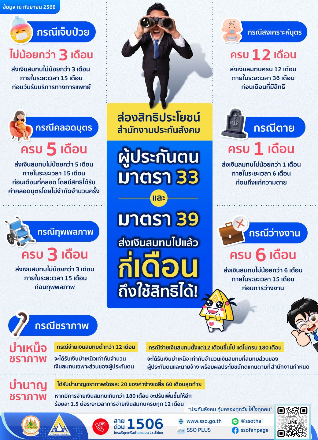 ทั้งนี้ สอบถามข้อมูลสำนักงานประกันสังคมได้ที่ www.sso.go.th หรือโทรสายด่วน 1506 ให้บริการทุกวัน ตลอด 24 ชั่วโมง