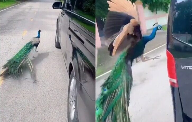 กรณีผู้ใช้ ติ๊กต็อก 2alessandra9 โพสต์คลิปสุดฮือฮา เมื่อจอดรถอยู่ดีๆ กลับมีนกยูงจากไหนไม่รู้มาไล่จิกรถ จนกลายเป็นไวรัลคนดูกว่า 6.6 แสนครั้งแล้ว โดยระบุว่า “จอดรถไฟ นกยูงมาจิก ขูดรถ”