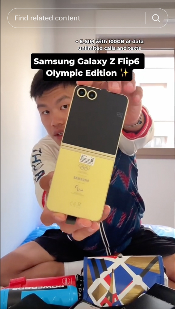 เฟรม-ธนาคาร ไชยยาสมบัติ นักกีฬาจักรยานทีมชาติไทย รีวิวมือถือ Galaxy Z Flip 6 Olympic Edition ที่ได้รับจากการเข้าร่วมแข่งขันโอลิมปิก 2024 ปารีส (Photo: TikTok@frame_thnk)[/caption]
