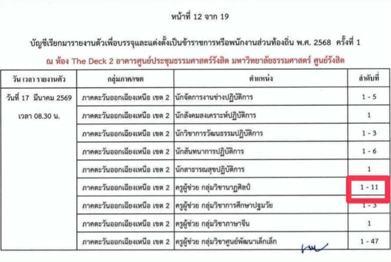 ทางเจ้าหน้าที่โทรแจ้งอันดับ 2-11 วันนี้ ว่าพิมพ์ผิด รับแค่ 1 ตำแหน่ง ทั้งที่ผ่านมารวมปีกว่า มีจดหมายตราครุฑออกทุกฉบับจนจะถึงวันรายงานตัวที่ 17 นี้ ให้เหตุผลแค่ว่าพิมพ์ผิด