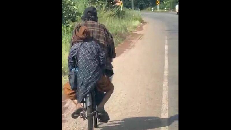 คู่รักแท้ ตาปั่นจักรยาน พายายเมียตาบอด กลับบ้าน ระยะทางเกือบ 80 กิโลเมตร ท่ามกลางสภาพอากาศที่ร้อนจัด