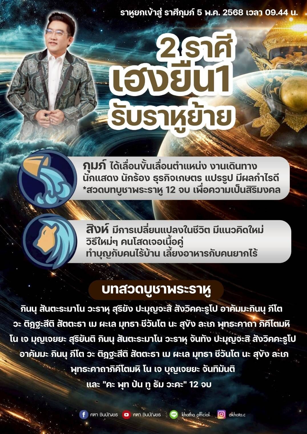 คฑา ชินบัญชร เผยดวง 2 ราศี เฮงยืนหนึ่งรับราหูย้าย ได้เลื่อนขั้น ธุรกิจมีผลกำไรดี