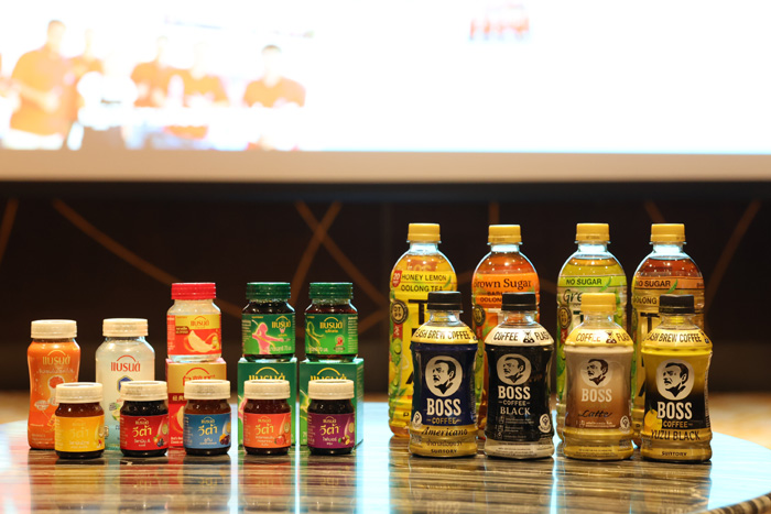 สำหรับตลาดประเทศไทย Suntory Beverage & Food ให้ความสำคัญกับนวัตกรรมและการพัฒนาผลิตภัณฑ์ที่ตอบโจทย์ไลฟ์สไตล์และแนวโน้มตลาดของผู้บริโภคชาวไทย เช่น การเพิ่มความหลากหลายของรสชาติ รูปแบบผลิตภัณฑ์ ตลอดจนคุณสมบัติด้านการดูแลสุขภาพในกลุ่มอาหารและเครื่องดื่มเพื่อสุขภาพ อย่างแบรนด์ที่พัฒนาสูตรที่หลากหลายเพื่อรองรับความต้องการของผู้บริโภคในแต่ละช่วงวัย เช่น แบรนด์ซุปไก่สกัดที่มีคาร์โนซีนและวิตามินบี12 ซึ่งมีส่วนช่วยในการทำงานตามปกติของระบบประสาทและสมอง รวมถึงเครื่องดื่มแบรนด์รังนกและแบรนด์วีต้า แอสตาแซนธิน ที่นำเสนอนวัตกรรมรูปแบบผลิตภัณฑ์และคุณสมบัติด้านสุขภาพเพื่อตอบโจทย์คนรุ่นใหม่ นอกจากนี้ ในกลุ่มผลิตภัณฑ์ชาและกาแฟพร้อมดื่ม ภายใต้การผลิตและจัดจำหน่ายโดย บริษัท ซันโทรี่ เป๊ปซี่โค เบเวอเรจ (ประเทศไทย) จำกัด ได้นำเสนอผลิตภัณฑ์ที่ใช้เทคโนโลยีการผลิตพิเศษตามแบบฉบับของซันโทรี่ ประเทศญี่ปุ่น ทำให้ผลิตภัณฑ์มีคุณภาพและเอกลักษณ์เฉพาะตัว ไม่ว่าจะเป็นการคัดเลือกวัตถุดิบใบชาและเมล็ดกาแฟอย่างพิถีพิถัน กระบวนการสกัดที่ดึงเอารสชาติ กลิ่นหอมละมุน และความเข้มข้นของวัตถุดิบออกมาได้อย่างเต็มที่ รวมทั้งพัฒนาสูตรที่ไม่มีน้ำตาลและสูตรน้ำตาลน้อยเพื่อตอบโจทย์ความต้องการของผู้บริโภคในปัจจุบันที่ให้ความสำคัญกับสุขภาพและรสชาติที่โดนใจ เช่น ทีพลัส สูตรไม่มีน้ำตาล, ทีพลัส ฮันนี่เลมอน, ทีพลัส บราวน์ชูการ์, และ กาแฟ บอส แบล็ค สูตรไม่มีน้ำตาล และ บอส ยูซุ แบล็ค