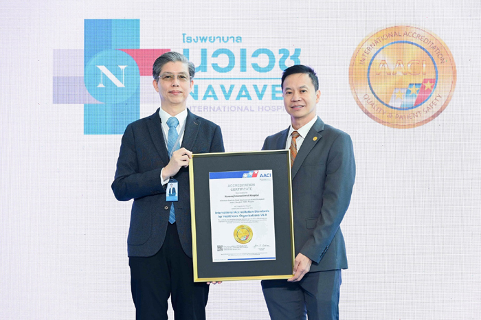 อีกหนึ่งไฮไลต์ที่เป็นความภาคภูมิใจของโรงพยาบาลนวเวช คือพิธีการรับมอบประกาศนียบัตรรับรองมาตรฐาน AACI (American Accreditation Commission International) มาตรฐานระดับสากลจากสหรัฐอเมริกา ที่ให้ความสำคัญกับความปลอดภัยของผู้ป่วย คุณภาพการรักษา และมาตรฐานการให้บริการ ที่จะช่วยสร้างความมั่นใจให้แก่ผู้มาใช้บริการว่า โรงพยาบาลมีมาตรฐานความปลอดภัยสูง มีบุคลากรที่ผ่านการประเมินคุณภาพ และให้บริการด้วยกระบวนการที่เป็นมาตรฐานระดับสากล และเมื่อจบพิธีการแล้ว ทางโรงพยาบาลยังได้นำคณะสื่อมวลชนที่มาร่วมงาน เยี่ยมชมศูนย์แม่และเด็กฉุกเฉิน 24 ชั่วโมง เพื่อตอกย้ำถึงความพร้อมในการดูแลสุขภาพทุกช่วงวัยอีกด้วย