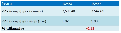 ธนาคารกรุงศรีอยุธยา จำกัด (มหาชน) หรือ BAY รายงานผลการดำเนินงานงวดไตรมาส 1/2568 มีกำไรสุทธิ ดังนี้