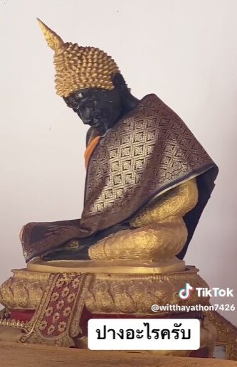 เมื่อวันที่ 1 พ.ค.66 ผู้สื่อข่าวรายงานว่า สมาชิก TikTok ท่านหนึ่งโพสต์คลิป ไปทำบุญที่วัดแห่งหนึ่งแล้ว เจอพระพุทธรูปสะดุดตา เป็นพระที่นั่งขัดสมาชิกแล้วพระพักตร์โน้มเอียงไปข้างหน้า จึงอัดคลิปไปถามชาวเน็ตในโลกออนไลน์ว่ามีใครพอทราบไหมว่า ปางอะไร? โดยเป็นเรื่องราวสร้างความขำขันให้กับโลกออนไลน์อย่างมาก