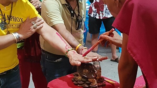 โดยมากราบไหว้ขอพรขอโชคลาภจาก ท้าวเวสสุวรรณ ที่เชื่อกันว่าสามารถดลบันดาลประทานพรความร่ำรวยและโชคลาภความสำเร็จมาสู่ผู้ที่ขอ พร้อมเข้ากราบพระครูยติธรรมานุยุต หรือ หลวงพ่อแป๊ะ เจ้าอาวาสวัดสว่างอารมณ์ พร้อมลงอักขระยันต์หลังฝ่ามือและเจิมหน้าผากเพื่อความเป็นศิริมงคล จากนั้นได้ร้องเพลงถวายเสียงให้กับหลวงพ่อแป๊ะฟังด้วย