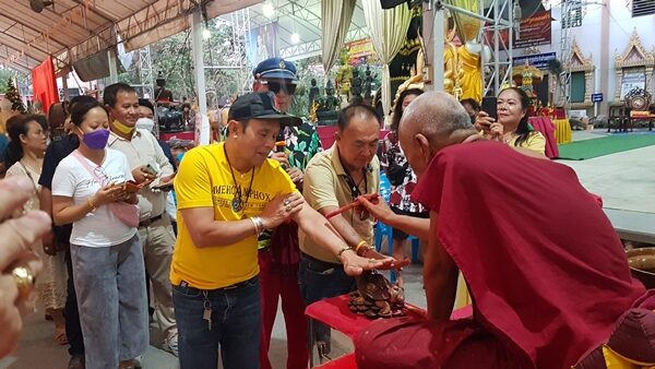 อ๊อด โฟร์เอส กล่าวต่อว่า ตนต้นฉบับรำวงชาวบ้านผู้สร้างตำนานและสร้างรำวงย้อนยุคขึ้นมา ได้นำวงดนตรีคณะใหญ่มาเล่นเฉลิมฉลองในงานปิดทองลูกนิมิต ร่วมกับหลวงพ่อ ใครอยากมาร่วมเต้นรำ ร้องเล่น หรือเต้นออกกำลังกายมาร่วมสนุกกัน วันนี้ตั้งใจมาลงอักขระหลังมือกับหลวงพ่อแป๊ะก่อนขึ้นเวที เพราะมีความเชื่อความศรัทธา เป็นลูกศิษย์หลวงพ่อและนับถือครูบาอาจารย์ ทุกสิ่งทุกอย่างมันอยู่ที่ใจ คิดดี ๆ สิ่งดี ๆ ตอบแทนกลับมา