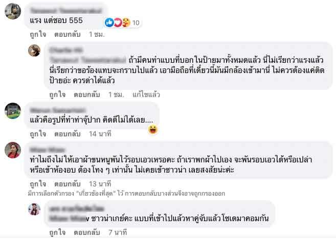 แต่สิ่งที่ชาวเน็ตแอบสงสัยคือ ป้ายสัญลักษณ์คำเตือนนั้น ดูแล้วแปลกกว่าป้ายจากร้านปกติ ซึ่งก็มีการเฉลยว่า เป็นร้านประเภทซาวน่าเกย์ แต่โดยรวมแล้วชาวเน็ตต่างบอกว่า ไม่ว่าจะเป็นร้านไหน หรือที่ไหน ก็ควรมีมารยาทและไม่ส่งเสียงดังจนเป็นที่รบกวนคนอื่นนั่นเอง