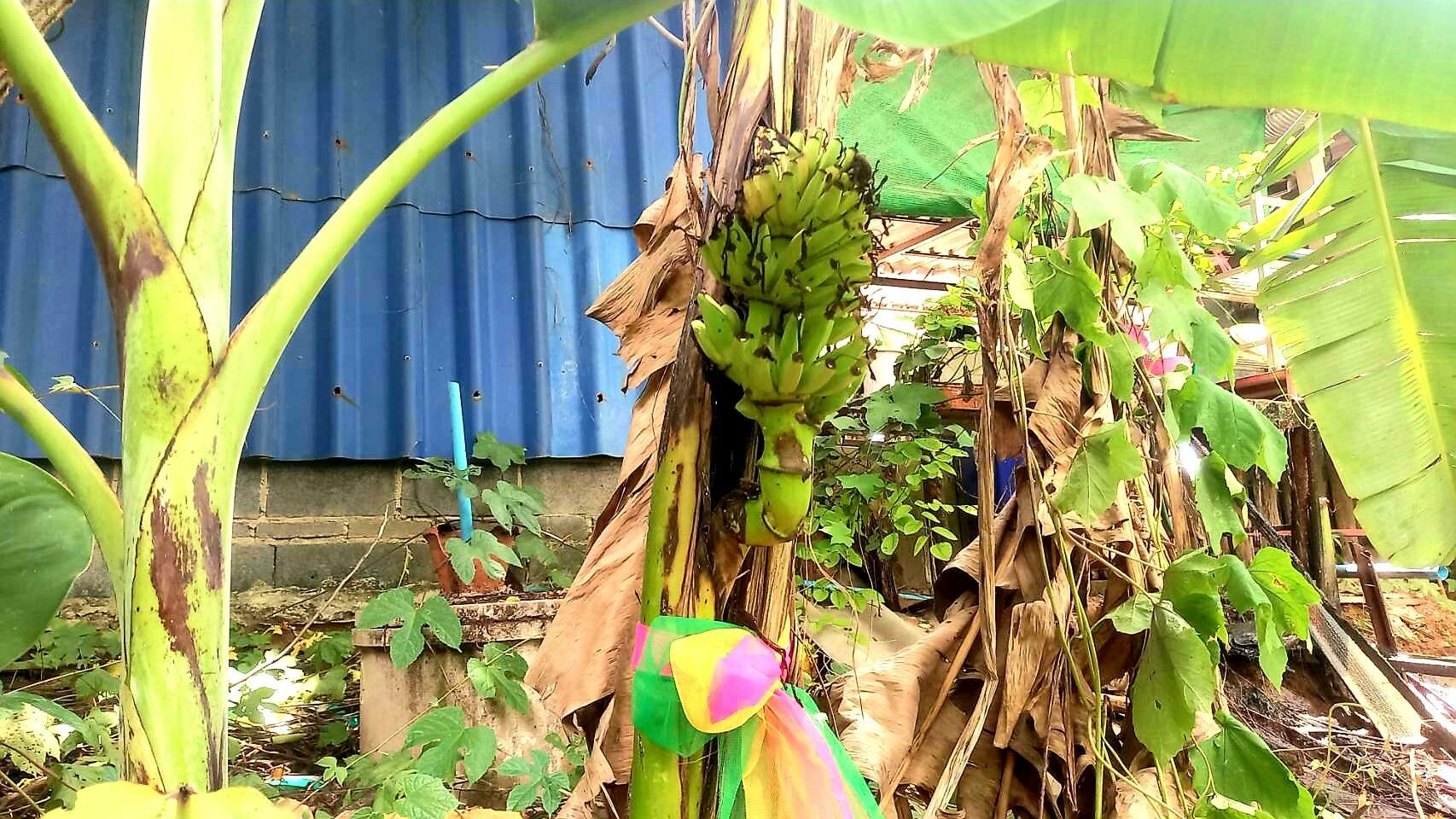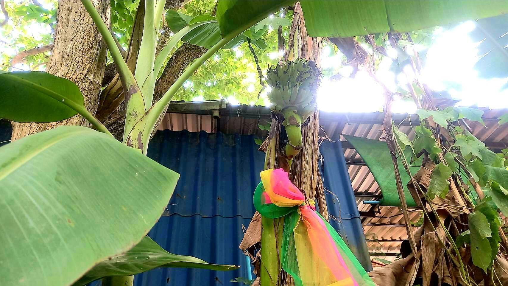 ซึ่งทางลูกชายเจ้าของร้านได้นับดูหวีกล้วยต้นนี้มีกล้วยทั้งหมด 14 หวี ได้นำผ้า 3 สีมาผูกไว้ที่ต้นกล้วย ได้นำน้ำแดงมาไหว้ และนำธูปตัวเลขมาจุดขอโชคขอลาภไว้บริเวณต้นกล้วยดังกล่าว