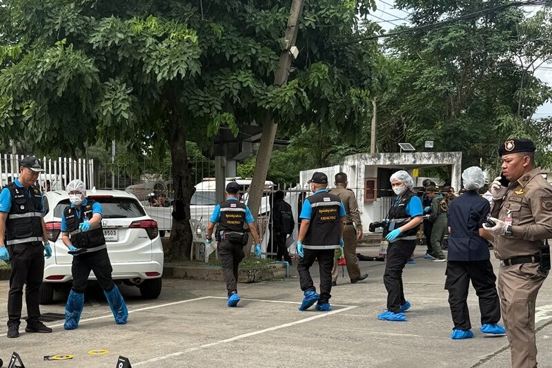 จากกรณีเกิดเหตุคนร้ายชายกราดยิงภายในตลาดสดองค์การตลาดเพื่อเกษตรกร หรือ ตลาดสด อ.ต.ก. จตุจักร กรุงเทพฯ ใกล้กับบริเวณจุดรับบริจาคของ (ชายแดนไทย-กัมพูชา) “กัน จอมพลัง” เบื้องต้นมีเจ้าหน้าที่ รปภ. เสียชีวิตแล้ว 4 ราย แม่ค้าในแผงตลาด 1 ราย โดยคนร้ายได้แต่งกายเสื้อยืดสีดำ นุ่งกางเกงขาสั้นลายทหาร สวมหมวกแก๊ป สะพายกระเป๋าเป้ เดินถืออาวุธปืนพกสั้นอยู่บริเวณใกล้กับจุดเกิดเหตุ กระทั่งตัดสินใจก่อเหตุจบชีวิตบริเวณม้านั่งด้านหน้าแผงร้านภรรยา รวมผู้เสียชีวิต 6 ราย ตามที่มีการรายงานข่าวไปแล้วนั้น