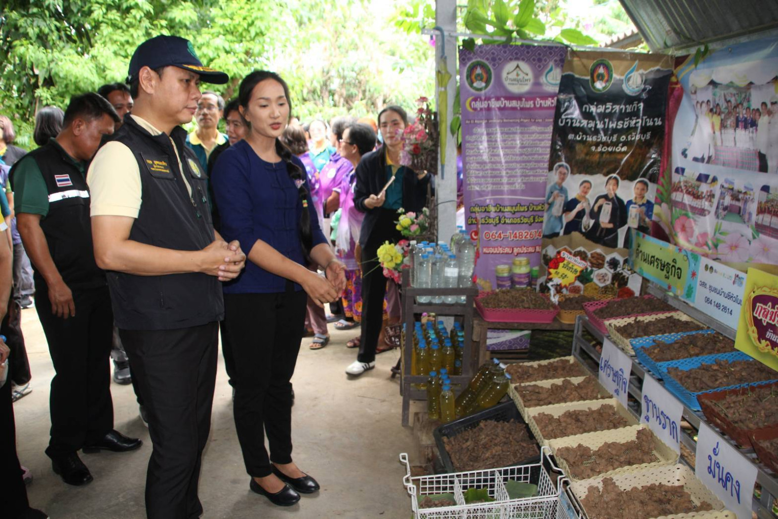 ช่วงบ่าย คณะผู้ตรวจราชการได้ลงพื้นที่ตรวจเยี่ยมจุดฝึกอบรมกลุ่มวิสาหกิจชุมชนบ้านสมุนไพรชีหัวโนน หมู่ที่ 2 ตำบลธวัชบุรี อำเภอธวัชบุรี โดยมีหัวหน้าส่วนราชการในสังกัดกระทรวงเกษตรฯและผู้ช่วยศาสตราจารย์ ดร.วิไลวรรณ โพนศิริ รองคณบดีฝ่ายบริหาร คณะบริหารธุรกิจและการบัญชีมหาวิทยาลัยราชภัฏร้อยเอ็ด นำนักศึกษาฯ เข้าร่วม และได้รับฟังรายงานผลการดำเนินงานจากนายจิตรปราณี จันทเก เกษตรอำเภอธวัชบุรี และนางสาวกชกร สายันต์ ประธานกลุ่มวิสาหกิจชุมชน ซึ่งได้สรุปแนวทางการดำเนินงานของกลุ่มฯ ที่มีการต่อยอดภูมิปัญญาท้องถิ่นด้านสมุนไพรไทยจนเกิดผลเป็นรูปธรรม ทั้งยังได้รับมอบใบรับรองมาตรฐาน GAP ให้แก่สมาชิกกลุ่มจำนวน 5 ราย