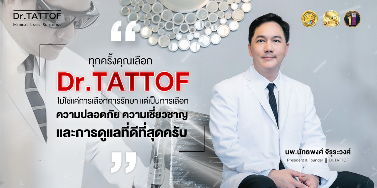 Dr.TATTOF เกิดขึ้นจากการที่ผมมองเห็นโอกาสในการพัฒนาบริการด้านเลเซอร์เฉพาะทาง โดยเฉพาะ ในเรื่องการลบรอยสัก ซึ่งในอดีตยังเข้าถึงได้ยาก และผลลัพธ์ไม่แน่นอน เราจึงมุ่งมั่นที่จะสร้างแบรนด์ที่เป็น Laser Specialist อย่างแท้จริง ให้บริการด้วยเทคโนโลยีที่ทันสมัย ความรู้ที่ถูกต้อง และทีมแพทย์ที่มีประสบการณ์