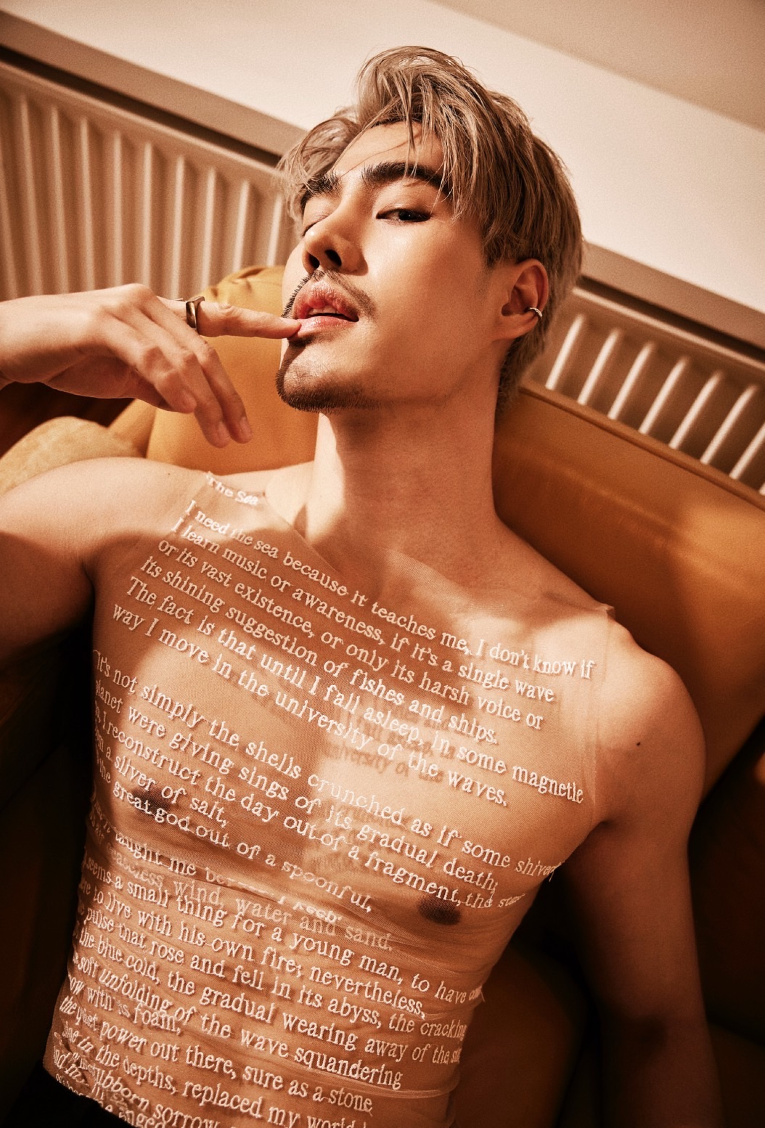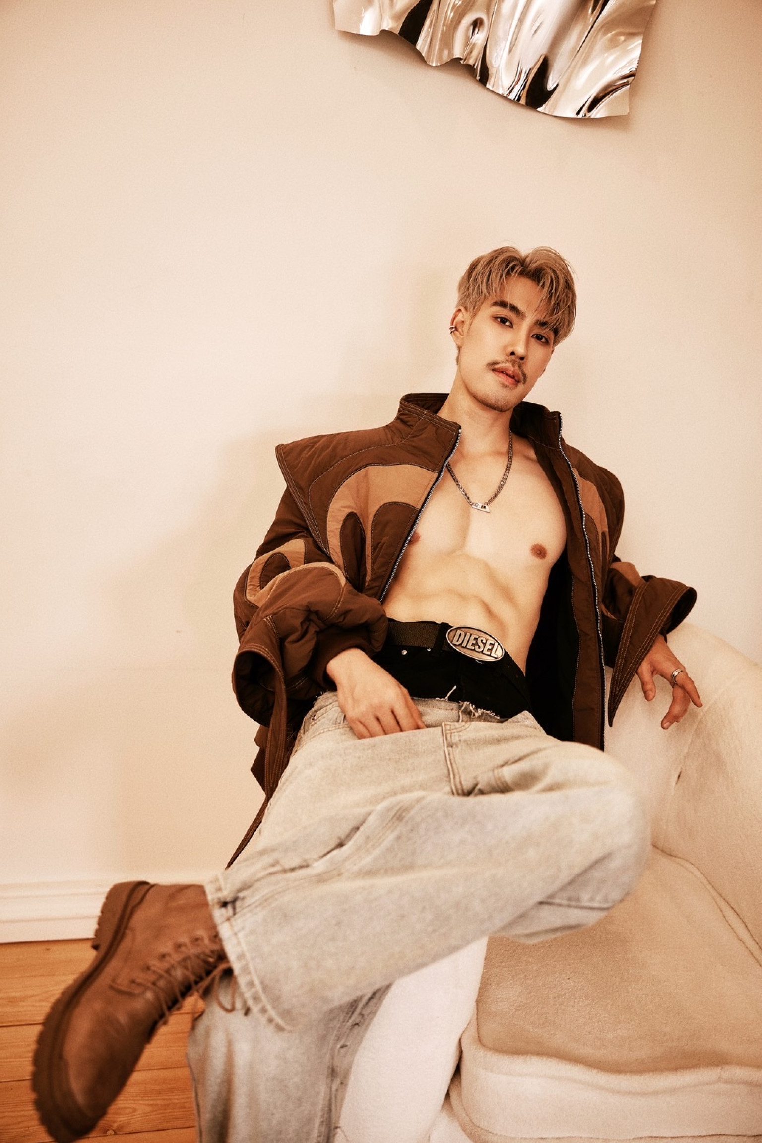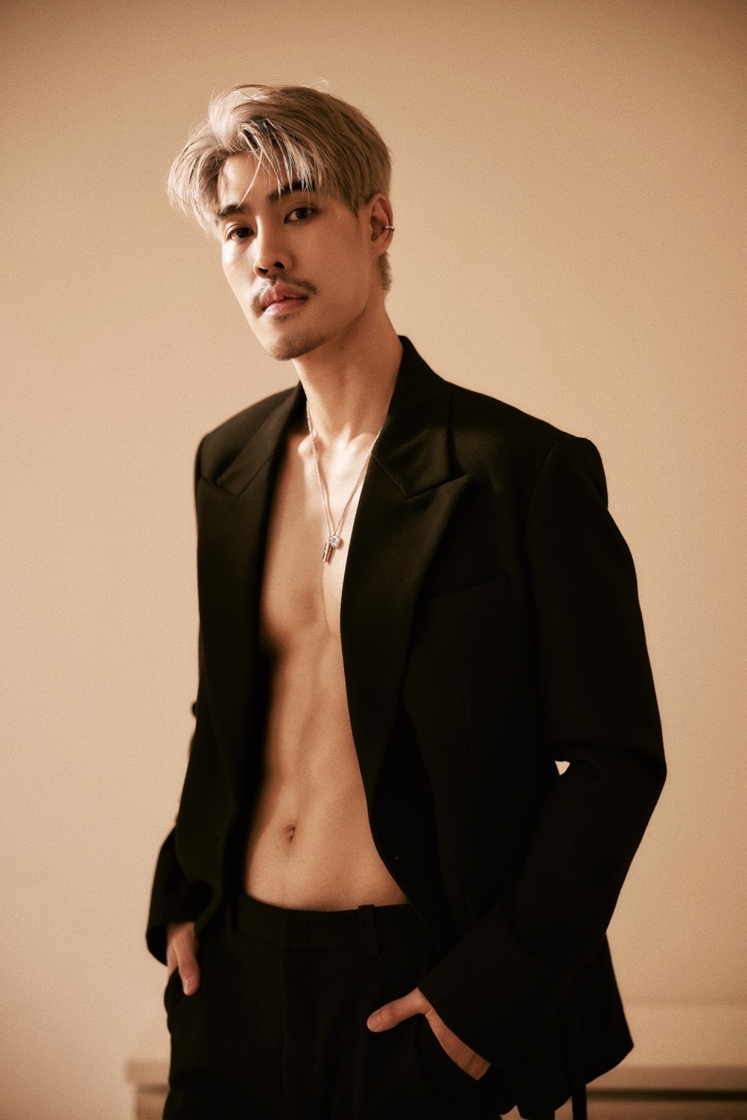 ไม่ว่าจะเป็นลุคถอดเสื้อโชว์กล้ามแน่น ๆ พร้อมตัวอักษรสกรีนสุดเก๋ทั่วลำตัว ที่แฝงไปด้วยความเท่และความน่าค้นหา หรือจะเป็นลุคเบลเซอร์สูทสีดำที่เผยให้เห็นแผงอกแบบพอดี ๆ และอีกหนึ่งลุคกับเสื้อแจ็คเก็ตดีไซน์ล้ำคู่กับกางเกงยีนส์เอวต่ำ ที่ยิ่งตอกย้ำความหล่อเท่สไตล์หนุ่มสายแฟตัวจริง ต้องบอกเลยว่าไม่ใช่แค่หล่อและหุ่นดีเท่านั้น แต่ความมั่นใจในตัวเองและพลังงานที่ส่งผ่านเลนส์กล้องออกมา ยังเต็มไปด้วยเสน่ห์และคาริสม่าที่ยากจะละสายตา