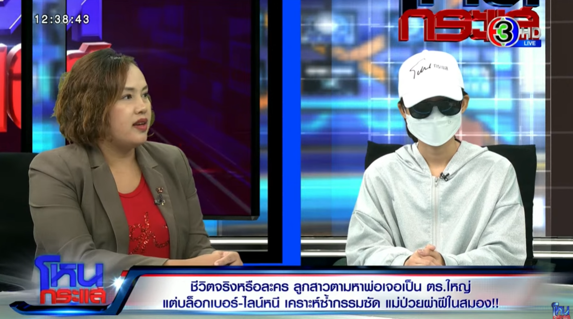 ผู้เป็นพ่อ ซึ่งเป็นตำรวจ ยศพ.ต.อ. ติดต่อผ่านทีมงานรายการบอกมาเพียงว่า "ไม่สะดวกจะเข้าสายโฟนอิน แต่ให้ข้อมูลว่า ตอนที่น้องยังเด็กมากๆ เคยดูแลโดยพาลูกไปให้น้อง ซึ่งเป็นแพทย์ช่วยเลี้ยงดูอยู่ที่ชลบุรี ไปทั้งแม่-ลูก อยู่ได้ไม่เกิน 3 เดือน แม่หอบลูกหนีไปเลย บอกว่าจะไปทำงานที่ญี่ปุ่น แม่เด็กทำสิ่งที่ตัวเองรับไม่ได้ จากนั้นก็บล็อกการติดต่อกันทุกช่องทาง ไม่ได้ติดต่อกันอีกเลย"