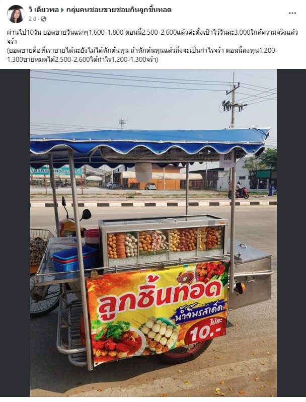 อ่านข่าวต้นฉบับได้ที่ : อย่ากลัวที่จะเริ่ม แม่ค้าลูกชิ้นทอด เริ่มขาย 10 วัน ได้กำไรหลักพันแล้ว