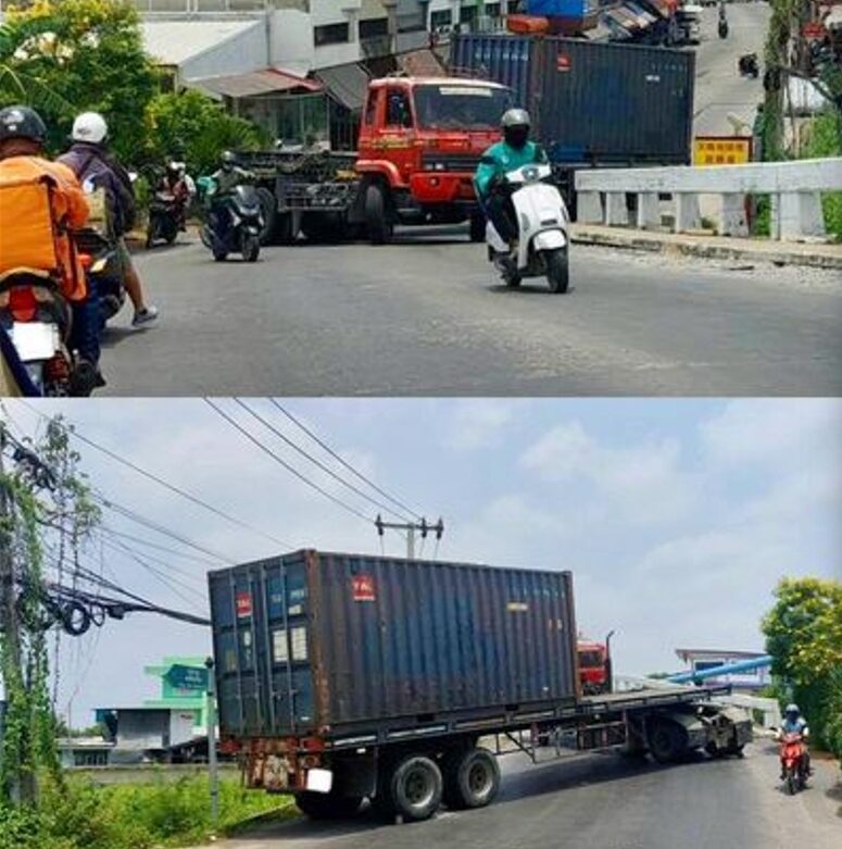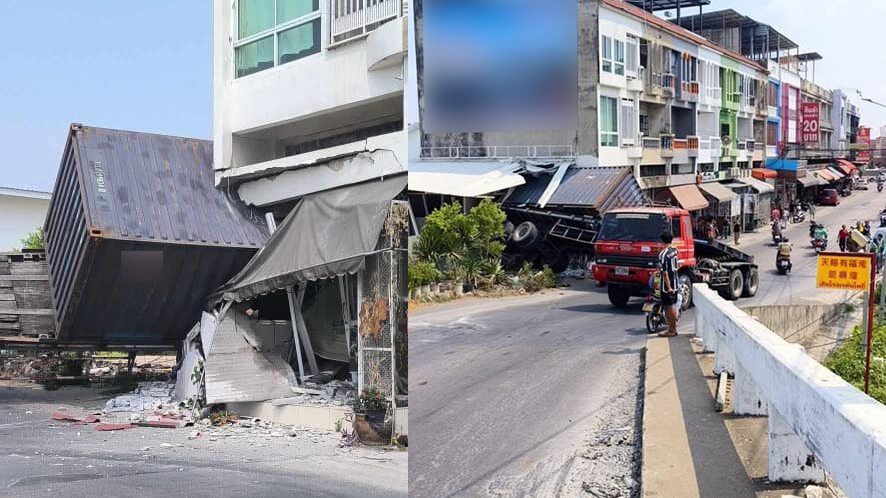 อ่านข่าวต้นฉบับได้ที่ : ระทึก รถพ่วงขนตู้คอนเทนเนอร์ จอดเสียบนสะพาน ก่อนรถไหลโดนอาคารพังเละ