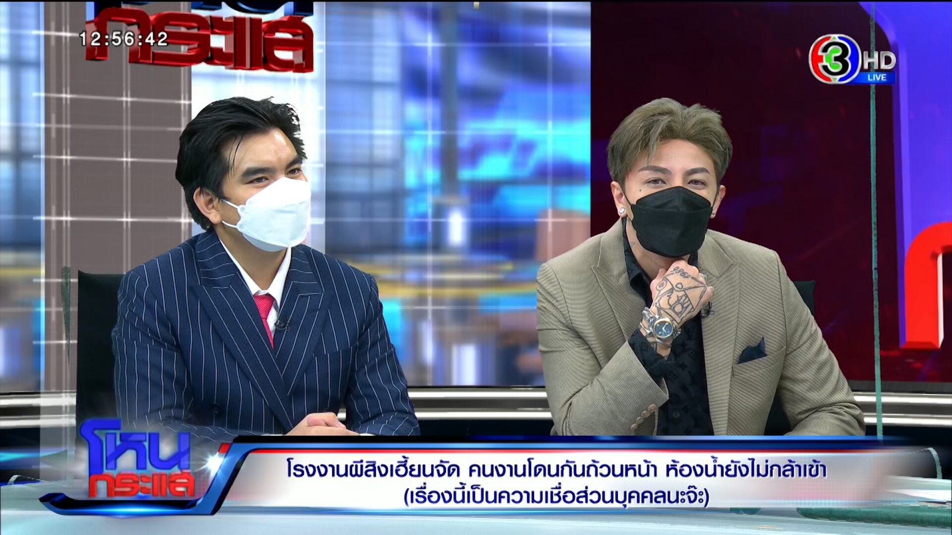 รายการโหนกระแสวันที่ 24 ธ.ค. 64 “หนุ่ม กรรชัย กำเนิดพลอย” ในฐานะผู้ดำเนินรายการ ผลิตในนามบริษัท ดีคืนดีวัน จำกัด ออกอากาศทุกวันจันทร์-ศุกร์ เวลา 12.35 น. ทางช่อง 3 กดเลข 33 สัมภาษณ์ แอร์ เดอะมูส เจ้าของโรงงาน , องุ่น กรรมการผู้จัดการ , ชำนาญ , สิริวรรณ พนักงาน มาพร้อม หมอปลา มือปราบสัมภเวสี