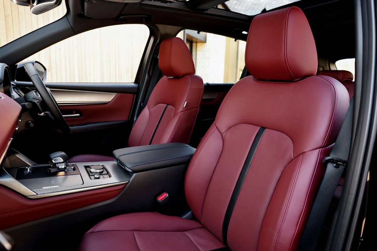 ภายในเหมือนรุ่น CX-90 เกือบทุกอย่างยกเว้นตัดเบาะหลังตอนสามออกไป พร้อมสิ่งอำนวยความสะดวกตั้งแต่ มาตรวัดดิจิทัล TFT-LCD 12.3 นิ้ว จอสัมผัสขนาดใหญ่ 12.3 นิ้ว แบบ See-Though View รองรับการเชื่อมต่อไร้สายทั้ง Apple Car Play และ Android Auto ผ่านปุ่มควบคุมอัจฉริยะ Center Commander