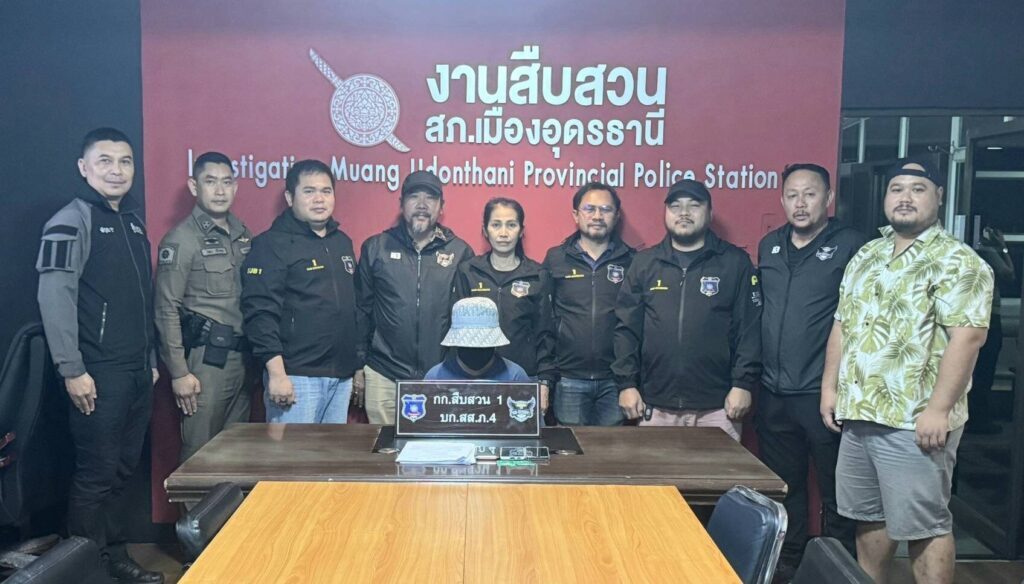 พร้อมด้วยตำรวจสืบสวน 1 บก.สส.ภ.4 ตำรวจชุดสืบสวน ภ.จว.อุดรธานี ตำรวจชุดสืบ สภ.เมืองอุดรธานี และตำรวจป้องกันและปราบปราม สภ.เมืองอุดรธานี ร่วมกันจับกุม น.ส.ชุติกาญจน์ อายุ 40 ปี ชาว อ.เมือง จ.อุดรธานี พร้อมด้วยของกลางโทรศัพท์มือถือ 3 เครื่อง สลิปการโอนเงิน ข้อความติดต่อล่อซื้อผ่านโซเชียล และถุงยางอนามัย 2 ชิ้น