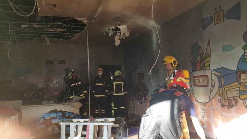 เมื่อไปถึงที่เกิดเหตุ ซึ่งเป็นศูนย์เด็กเล็ก ภายในห้องเรียน พบมีควันไฟและเปลวไฟกำลังพวยพุ่งออกมา เจ้าหน้าที่ดับเพลิงจึงรีบฉีดน้ำสกัดเพลิงทันที โดยใช้เวลาประมาณ 30 นาที เพลิงจึงสงบลง โดยไม่พบผู้เสียชีวิตและบาดเจ็บ ตรวจสอบความเสียหายพบว่าภายในห้องถูกไฟไหม้เสียหาย รวมทั้งอุปกรณ์การเรียน และ หนังสือเรียน