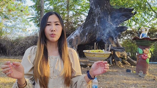 วันที่ 23 ธ.ค.2567 ที่ไร่องุ่นนิวเนรมิต บ้านเขาหัวทอง ต.อุดมทรัพย์ อ.วังน้ำเขียว จ.นครราชสีมา น.ส.ปุณณ์ภัสสร เจนจำรัสฤทธิ์ อายุ 34 ปี เจ้าของไร่ ได้เชิญหมอพราหมณ์ มาช่วยหาวิธีย้ายตอต้นตะเคียนขนาดใหญ่ที่บริเวณท้ายไร่